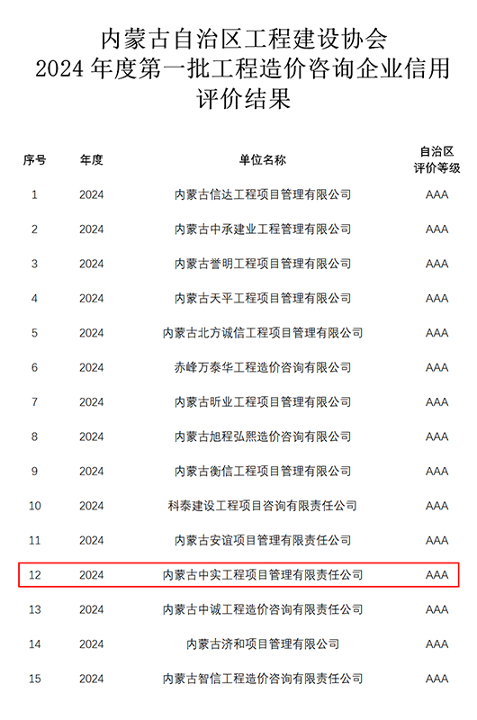 2024-07-3014673 次近期,我公司参加内蒙古自治区工程建设协会组织的“2024年度第一批工程造价咨询企业信用”申报,获得“信用AAA级证书”。我公司成立多年以来,遵循中国工程造价管理协会对造价咨询企…